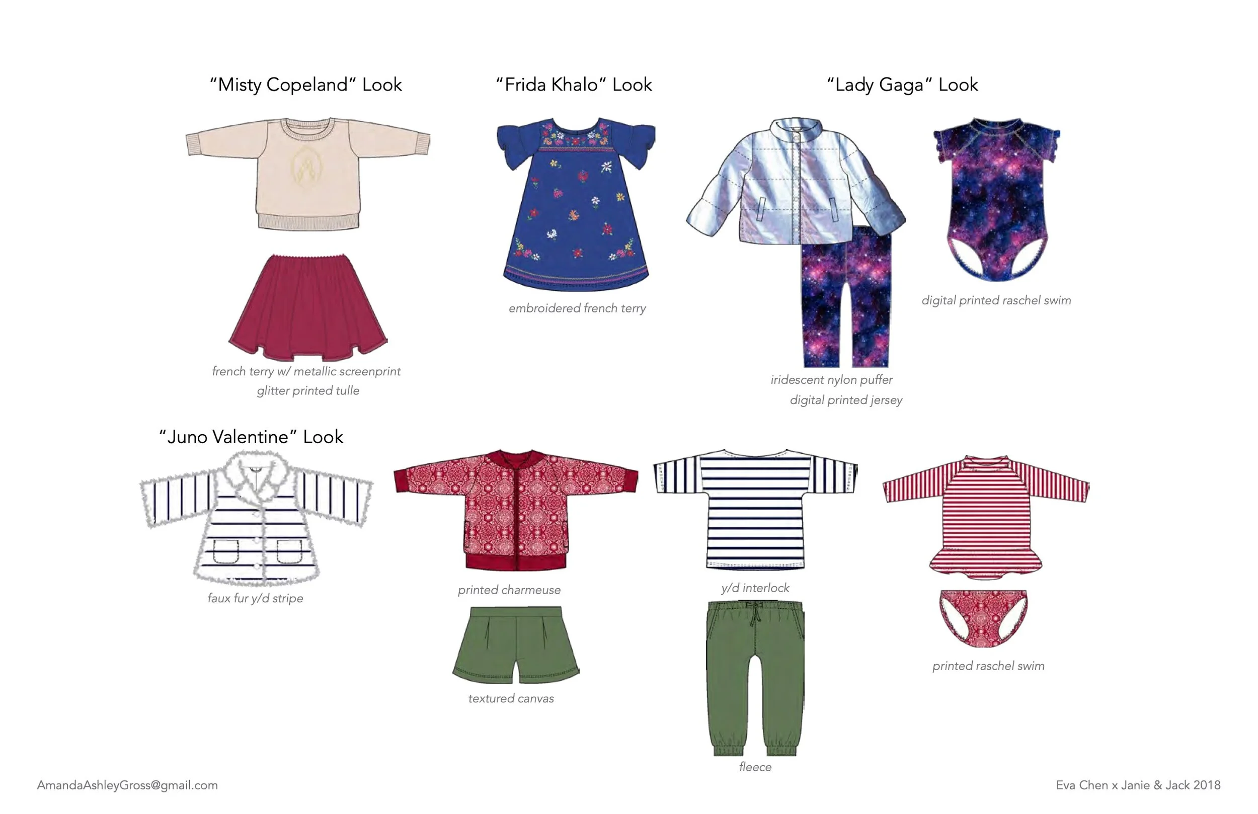 For this collection, we collaborated with Eva Chen, the Director of fashion partnerships for Instagram. She reached out to us wanting to create a companion line to her first children’s book. We modeled the collection after initial ideas on her character’s costumes, working in tandem as the book was being written and illustrated. We also had the unique challenge of creating unisex pieces that could be worn by Chen’s daughter or son. The collection got amazing exposure due to Chen’s social media following and promotional events that accompanied the book tour.